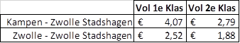 Zwolle-Kampen: De trein uit Zwolle vertrekt twee minuten eerder dan in de huidige dienstregeling: om .47 en .17. Op station Zwolle Stadshagen wordt gestopt om .51 en .21 en de trein arriveert in Kampen om .58 en .28. In Kampen wijzigt de aankomsttijd dus met één minuut.